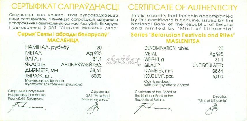 Baltarusijos kultūra ir istorija. Monetų serija Baltarusijos šventės ir tradicijos. Užgavėnės. Monetos paviršius oksiduotas.