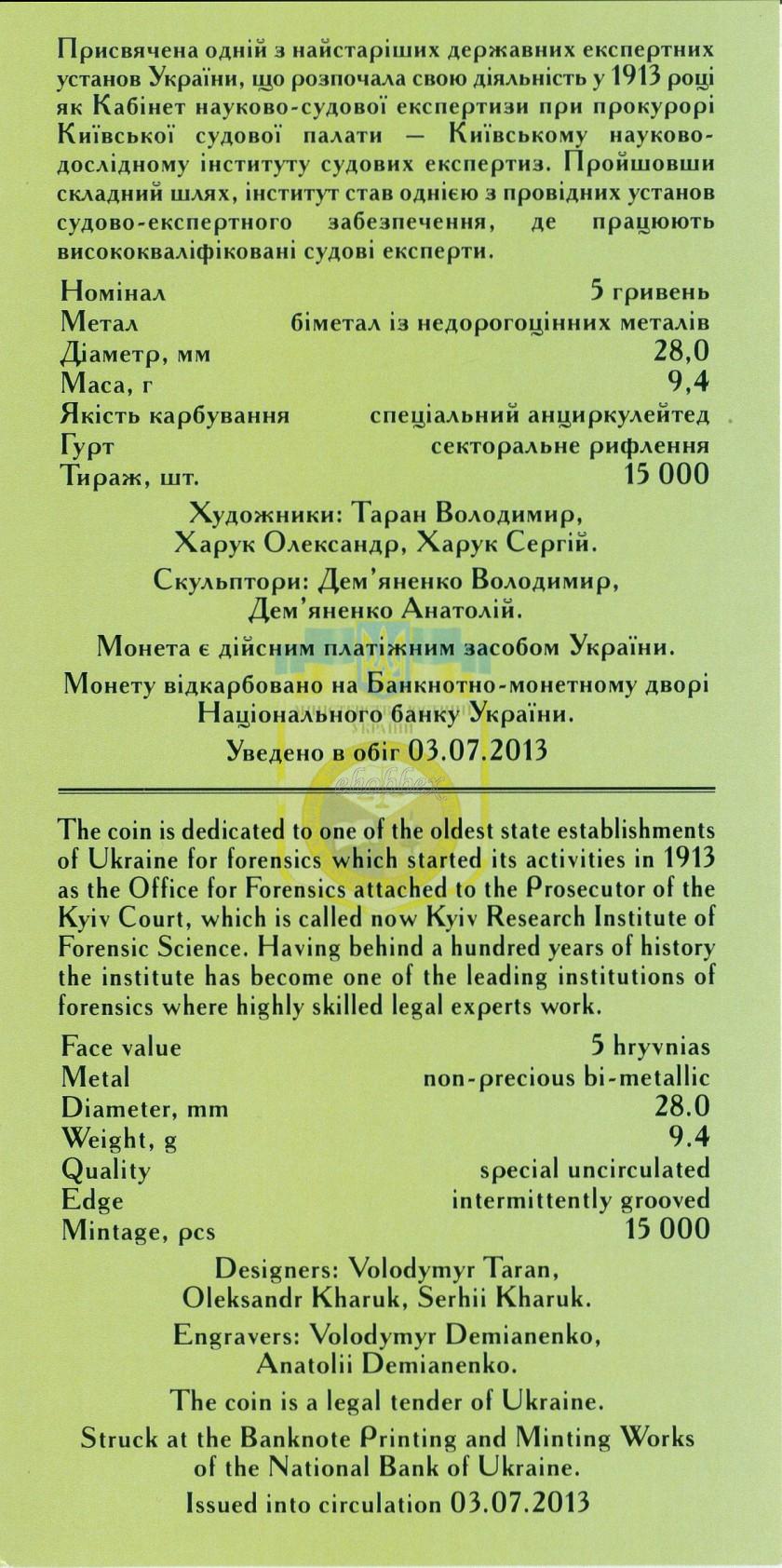 100 metų Kijevo teismo ekspertizės mokslinio tyrimo institutui