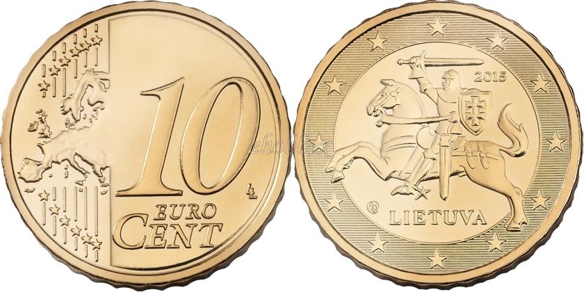 12 Europos Sąjungos žvaigždžių apsuptyje vaizduojamas Lietuvos Respublikos herbas Vytis ir nurodomas monetą išleidusios šalies pavadinimas „LIETUVA“ bei išleidimo metai „2015“. Averse prieš LIETUVA kalyklos ženklas.