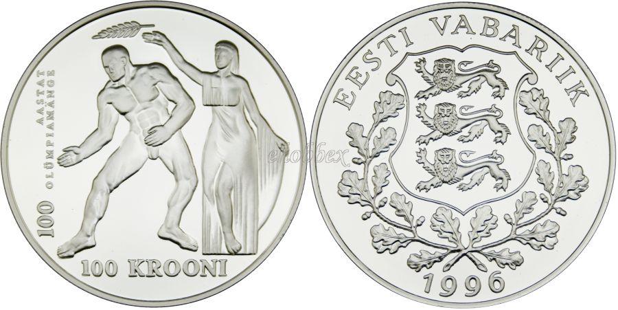 100 kronų sidabrinė moneta skirta paminėti 100 metų nuo modernių olimpinių žaidynių pradžios.
