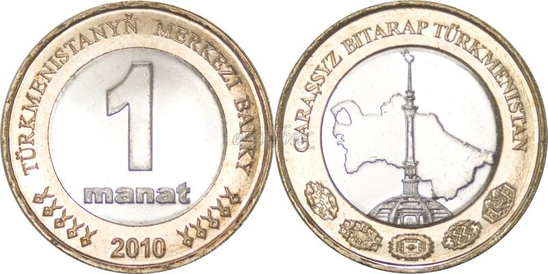 Turkmėnijos žemėlapis, nepriklausomybės paminklas ir užrašas GARAŞSYZ BITARAP TÜRKMENISTAN (Nepriklausoma neutrali Turkmėnija)