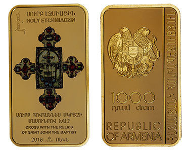 Центральный банк Армении ввёл в обращение серебряную памятную монету "Крест с мощами Святого Иоанна Крестителя".