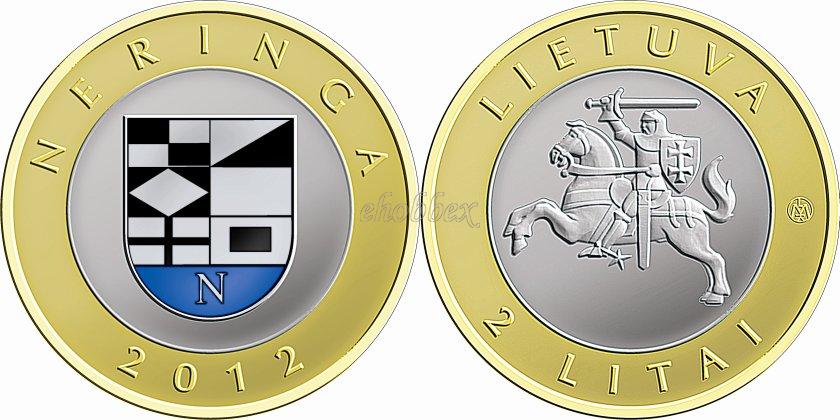 Четыре монеты из серии «Курорты Литвы».Курорт Бирштонас упоминается Вигандом Марбургским в его «Новой Прусской Хронике» в 1382 году как город Бирштен, расположенный вблизи соляных источников. Курорт Бирштонас был основан в 1846 году.20 июня 1794 года Станислав Август Понятовский, правитель Польши и Литвы, объявил Друскининкай лечебным курортом.Неринга, городок на Куршской косе, был основан в 1961 году, когда были объединены отдельные поселения Нида, Прейла, Пярвалка и Юодкранте. Это 50 км прибрежной песочной полосы. В 2000 году территория Куршской косы был включена в список Всемирного наследия ЮНЕСКО.Поселение Паланга впервые упоминается в соглашении между Ливонским орденом и Курляндией в 1253 году как Паланге. Во второй половине XIX века благодаря усилиям семьи графа Тышкевича Паланга стала известным лечебным курортом.