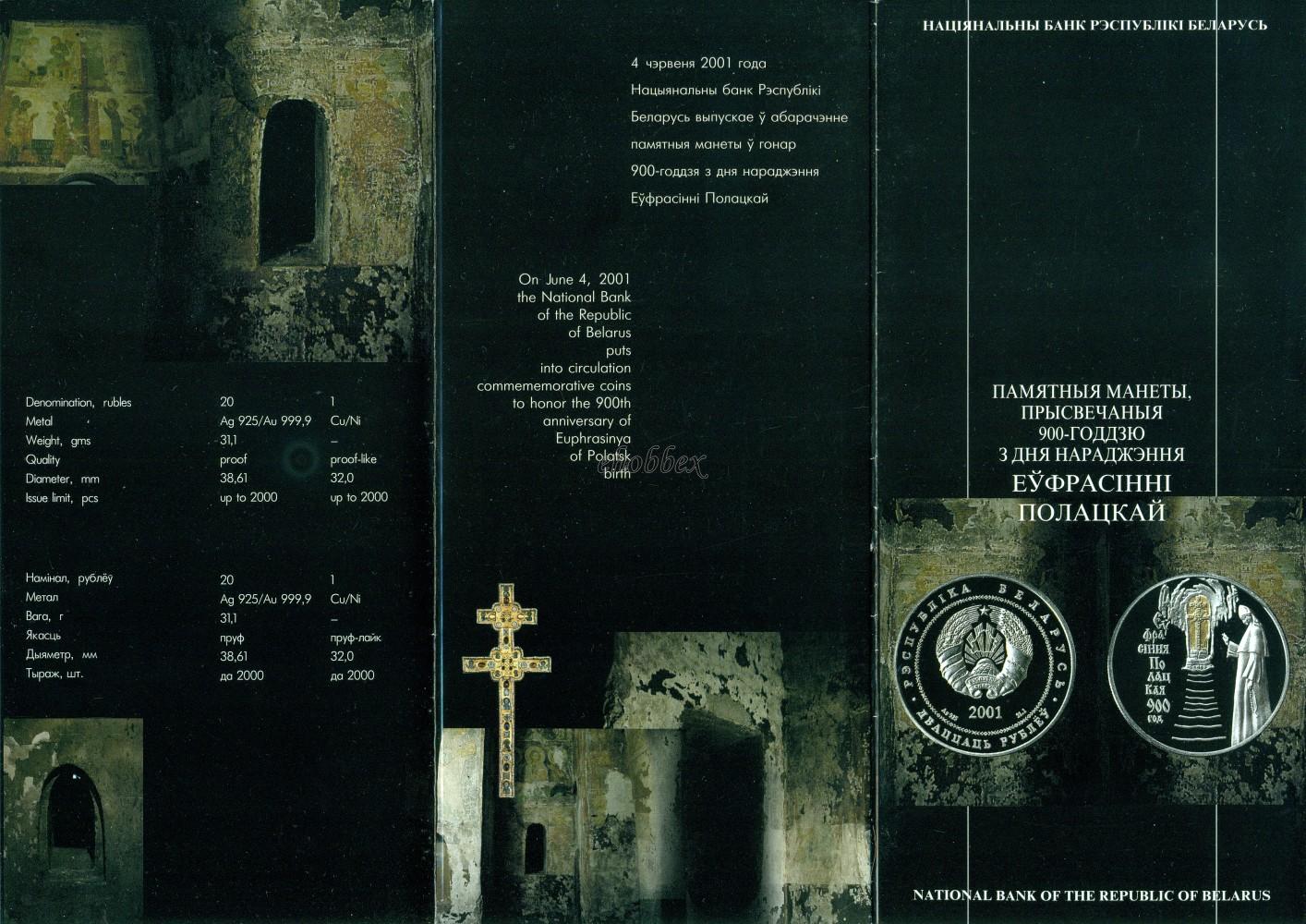 в круге, обрамленном геометрическим орнаментом, – рельефное изображение Государственного герба Республики Беларусь, под ним указаны год чеканки, для серебряной – масса драгоценного металла в чистоте и проба сплава; по кругу надписи: в верхней части – "РЭСПУБЛІКА БЕЛАРУСЬ", в нижней – "ДВАЦЦАЦЬ РУБЛЁЎ" – на серебряной и "АДЗІН РУБЕЛЬ" – на медно–никелевой.
