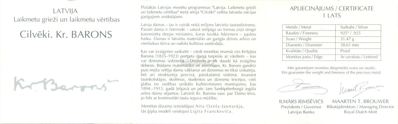 Кришьянис Барон (лтш. Krišjānis Barons; 31 октября 1835, Струтеле, Курляндская губерния — 8 марта 1923, Рига) — латышский писатель, фольклорист и общественный деятель, собиратель латышских народных песен (дайн). Активный участник прогрессивно-национального движения «младолатышей» 1860-х годов.