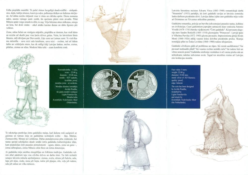 Земля, наш огромный и единственный дом, наполнена ритмами: постоянное чередование четырех времен года; смена темноты и света во время солнцестояний и праздники: Янов день, Мартынов день, Рождество, Масленица и Пасха и т.д. Смена сезонов отражается в латышской этнографии и фольклоре. Старинные латвийские названия двенадцати месяцев в году, например, такие: месяц Зимы, за ним идет месяц Свечи, месяц Снежного покрова или месяц Голубя, месяц Древесного сока, месяц Листвы или месяц Посева, Цветочный месяц, месяц Сена или месяц Липы, месяц Ржи или месяц Жатвы, месяц Леса, месяц Мертвых душ или месяц Осени, месяц Мороза и месяц Волка.
