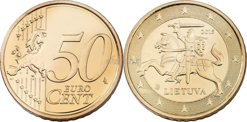 В центральном круге Витис (литовский Vytis «всадник, преследующий» – геральдический всадник с вознесённым над головой мечом и щитом с шестиконечным крестом, изображённый на гербе Литовской Республики), частично выходящий за круг. Под ним надпись (литовский) LIETUVA (ЛИТВА), справа вверху год чеканки, слева внизу знак монетного двора. По окружности, за кольцом, 12 звёзд флага Европейского союза на рифленом фоне из горизонтальных линий.