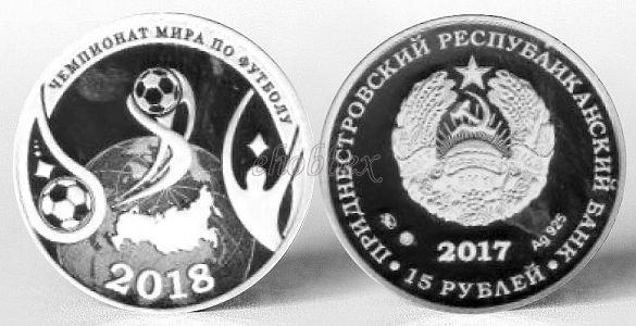 изображение Государственного герба Приднестровской Молдавской Республики; по кругу – надписи: вверху – «ПРИДНЕСТРОВСКИЙ РЕСПУБЛИКАНСКИЙ БАНК», внизу – «15 РУБЛЕЙ»; в нижней части под гербом – год выпуска монеты «2017», слева – логотип изготовителя, государственное пробирное клеймо, справа – обозначение металла, проба сплава.