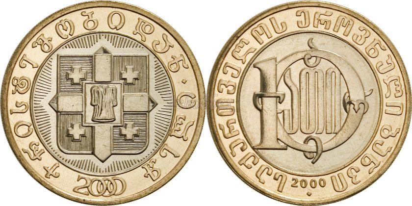 В центре монеты изображен геральдический щит с нанесенным на него Крестом и Хитоном Господним, по окружности надпись на грузинском языке "От роджества Христова 2000 лет".