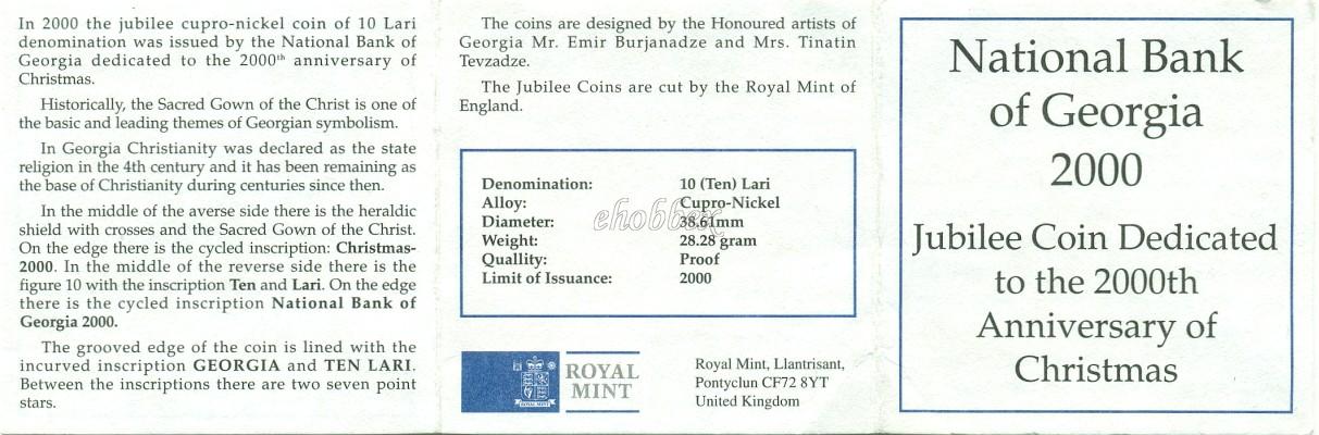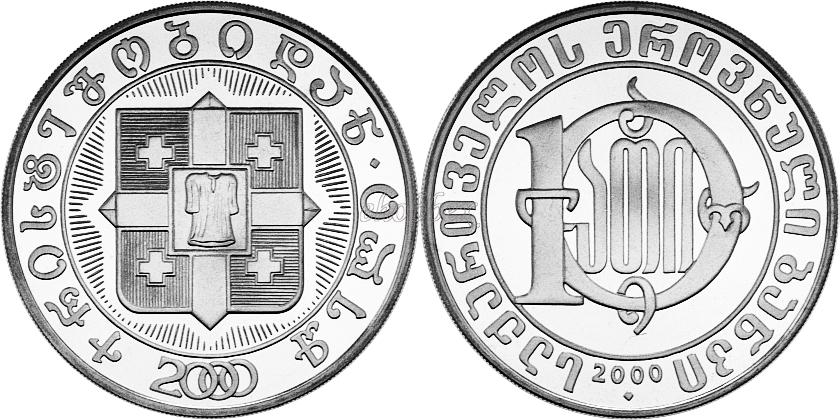 В центре монеты изображен геральдический щит с нанесенным на него Крестом и Хитоном Господним, по окружности надпись на грузинском языке "От роджества Христова 2000 лет".