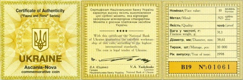 Монета посвящена 100-летию создания первого в Украине степного заповедника "Аскания-Нова", основателем которого был Фридрих Фальц-Фейн. Введена в обращение 20 мая 1998 года.